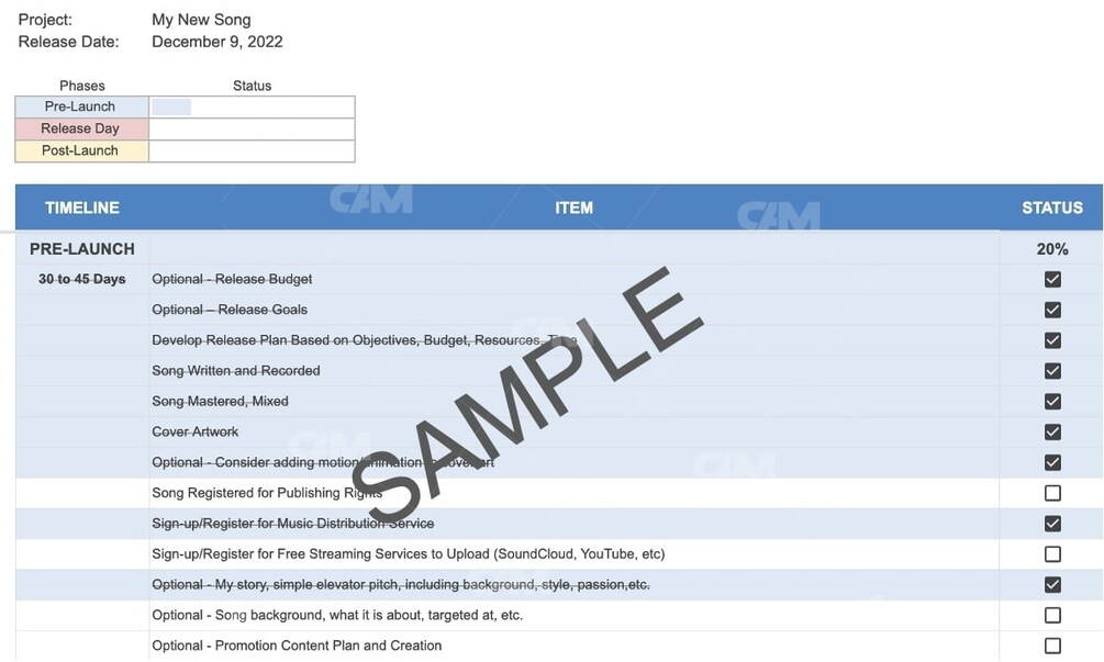 A Google Sheets - 65 Step release Plan for [ Pre Launch | Release Day | Post Launch }